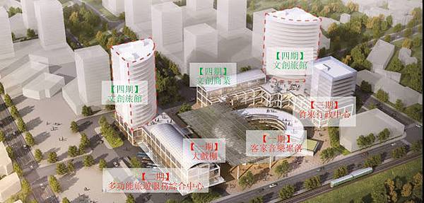 竹東客家音樂村計畫範圍落在竹東鎮工業一路、北興路一段、工業二路之間,面積近3公頃,計畫分為四期,第一期建置大戲棚與客家音樂聚落,第二期多功能旅遊服務綜合中心及交通轉運站,第三期竹東行政中心,第四期文創商業及旅館,希望打造兼具地方文化特色以及多元使用的空間,建置客家音樂聚落基地。