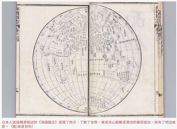 日本人透過魏源著述的《海國圖志》認識了西方、了解了世界,進而決心脫離逆潮流的幕府統治,而有了明治維新。(圖/維基百科)