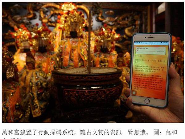 萬和宮建置了行動掃碼系統,讓古文物的資訊一覽無遺。 圖:萬和宮/提供