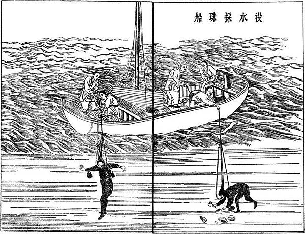 明朝《天工開物》插畫「沒人採珠」。(公有領域)