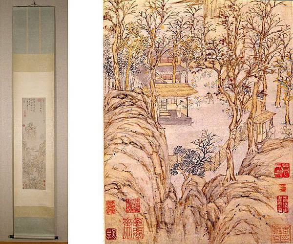 山水畫作品有立軸、手卷、冊頁、扇面等基本形制。立軸(掛軸)用縧繩懸掛,手卷一般是捲起收藏於篋中,必要時才會攤開鑑賞。