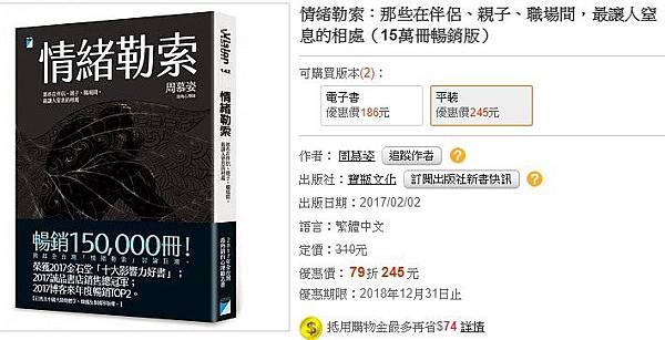 “情緒勒索”的英文是Emotional blackmail。這是由心理學家Susan Forward提出的觀念與論述。這本書是作者周小姐,特別針對台灣狀況進行的討論。