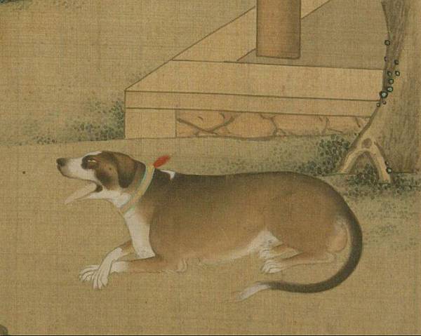 鄒家男主人的父親,因為貪婪的原因,一直不能超脫,所以托生為自家的家犬。圖為清 佚名《十犬圖冊》之圖九局部。(公有領域)