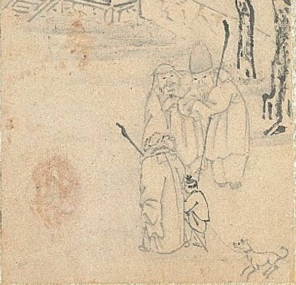 有一戶鄒姓民家,豢養了一隻家犬。圖為清 李世倬《人物》局部。(公有領域)