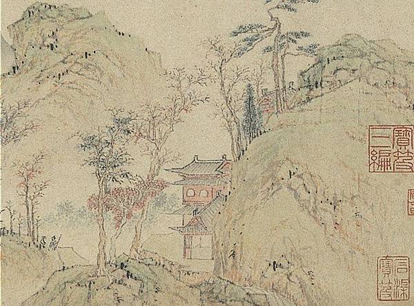 遼山寺正在修建房屋,鄒某想殺了家犬,再加上五斗麵粉,犒勞匠人。圖為明 陸治《丹楓秋色》局部。(公有領域)