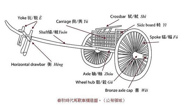 春秋時代馬戰車構造圖。(公有領域)