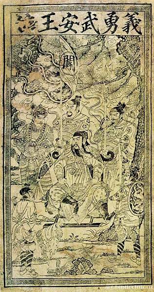 元代以前,金代有幅版畫,名為《義勇武安王》,是現今發現最早的關羽畫像。偃月刀業已在其中出現。