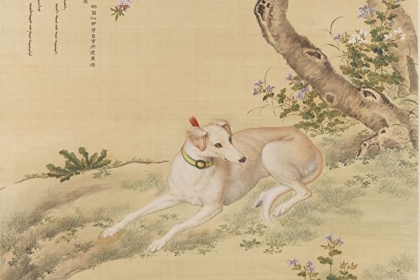 清 郎世寧《十駿犬圖》之睒星狼。(公有領域)