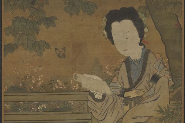 金兒天資聰穎,自幼誦讀經、史、仙、佛、諸子百家等,又精通卜卦,金兒的預測屢次應驗,時人號稱她為「姑姑」。圖為五代南唐周文矩《仕女圖》 局部。(公有領域)