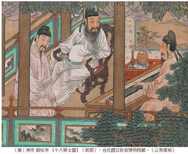 (傳)南宋 劉松年 《十八學士圖》(局部),台北國立故宮博物院藏。(公有領域)