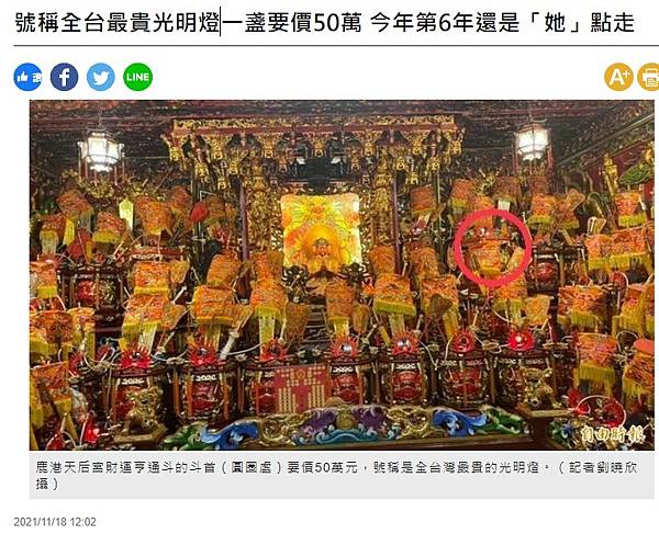 號稱全台最貴光明燈一盞要價50萬 今年第6年還是「她」點走 - 生活 - 自由時報電子報 https://bit.ly/3DtWWE3