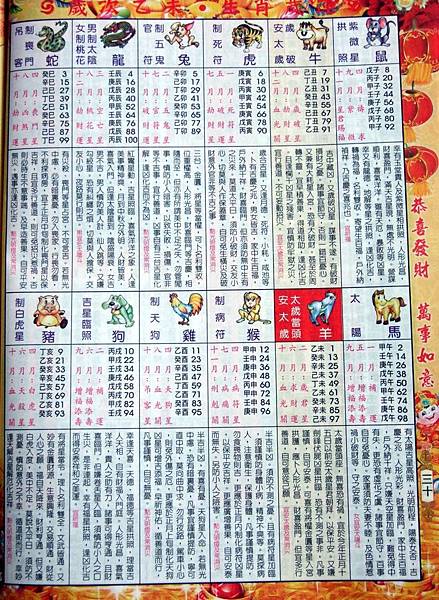 農民曆上的安太歲訊息(劉怡君攝)