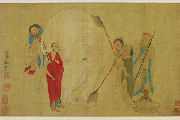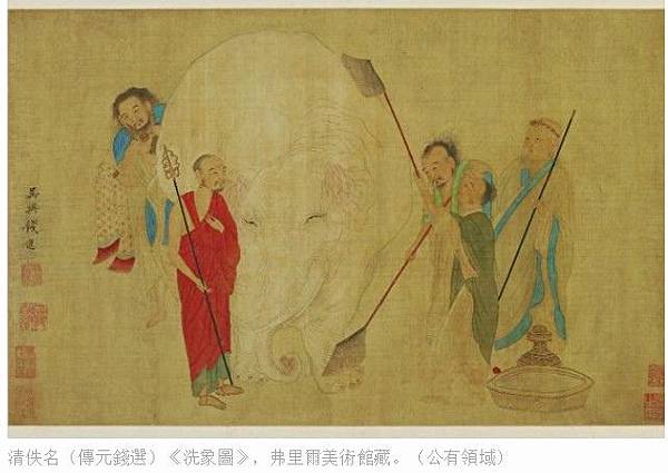 清佚名(傳元錢選)《洗象圖》,弗里爾美術館藏。(公有領域)