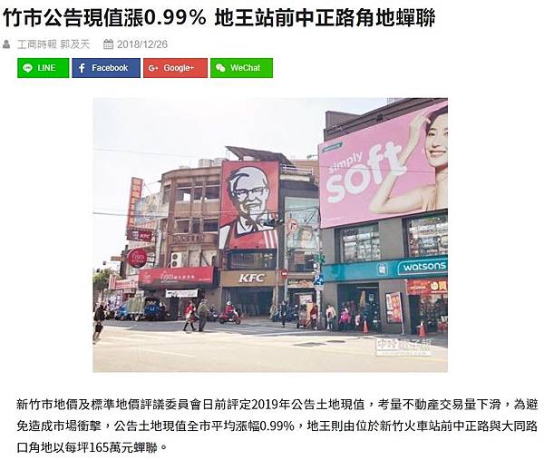 原文網址: 新竹火車站前三角地 每坪單價直逼165萬蟬聯地王冠軍 | ETtoday社會 | ETtoday新聞雲 https://www.ettoday.net/news/20181226/1341123.htm#ixzz5aqA7Edyb