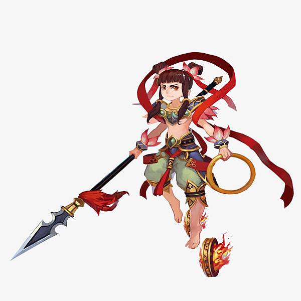 佛教傳說中,哪吒是一名青少年天神(原型可能是古波斯的神靈),法力高強,擁護佛法,是毘沙門天王的後裔,也是釋迦佛的弟子,稱哪吒太子、那拏天等。道教的傳奇中,哪吒姓李,父親是托塔李天王,上有二兄金吒、木吒,排行第三。也是玉皇大帝手下的主要將領之一,統帥五營神兵。道教的頭銜為太子元帥、中壇元帥、火輪天王、通天太師、威靈顯赫大將軍、三壇海會大神[3]等,民間一般尊稱太子爺、三太子,哪吒是華人崇敬的神靈,於很多民間故事中出現,也出現在《西遊記》、《封神演義》等多部文學作品中。