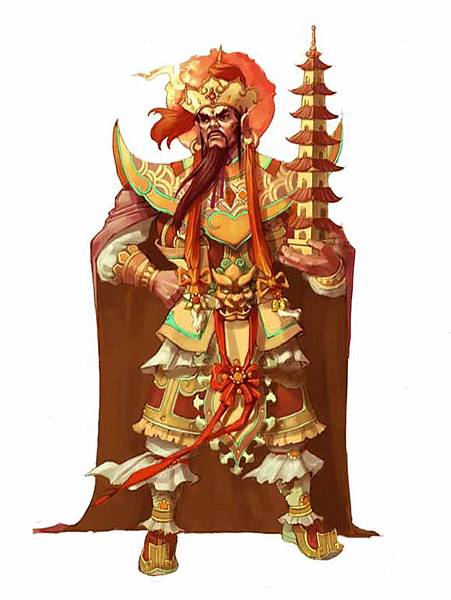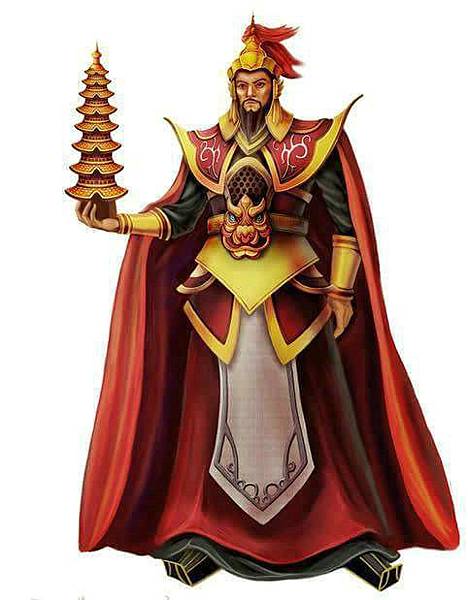 李靖又稱托塔天王,在中國神話中是著名的道教護法神,也是中壇元帥哪吒的父親,協助武王克殷有功,後位列仙班。