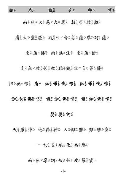 我曾勸人印送「白衣大士」神咒,以此願力之功德,改變一個人的命運,結果功效亦很神奇,所求應驗。目前,白衣神咒簡而易唸,可度化一般的凡夫,而大悲神咒字多稍微難唸些,一般人無法能讀之無誤,這也是菩薩顯化神功的不同之處了,以便利鈍兼收,同登慈航彼岸。