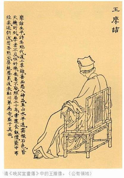 清《晚笑堂畫傳》中的王維像。(公有領域)