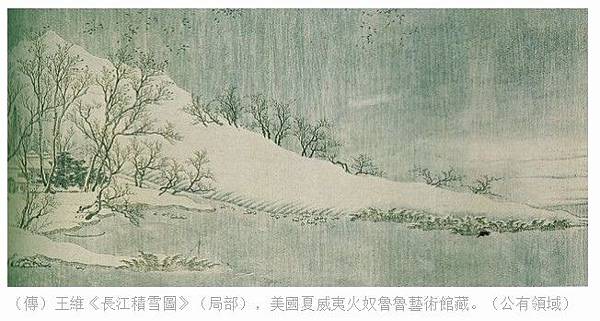 (傳)王維《長江積雪圖》(局部),美國夏威夷火奴魯魯藝術館藏。(公有領域)