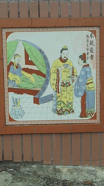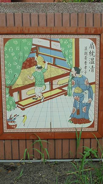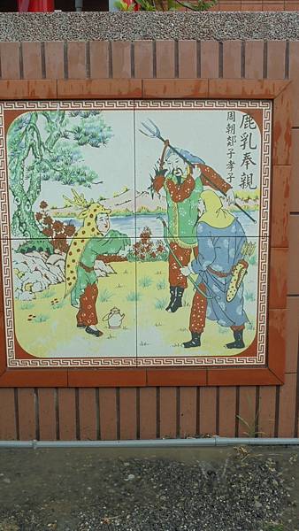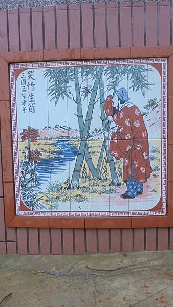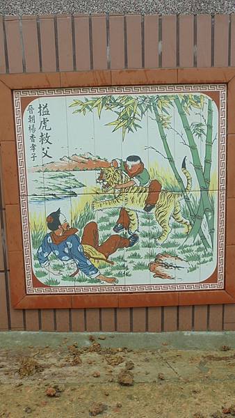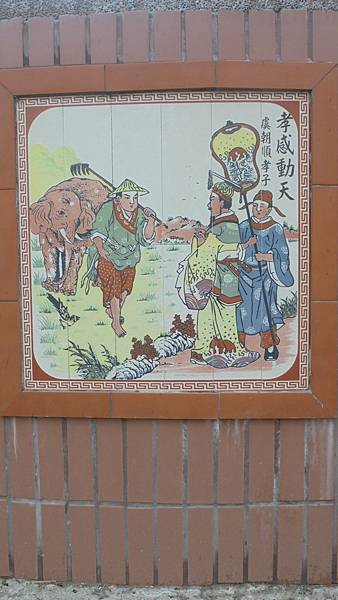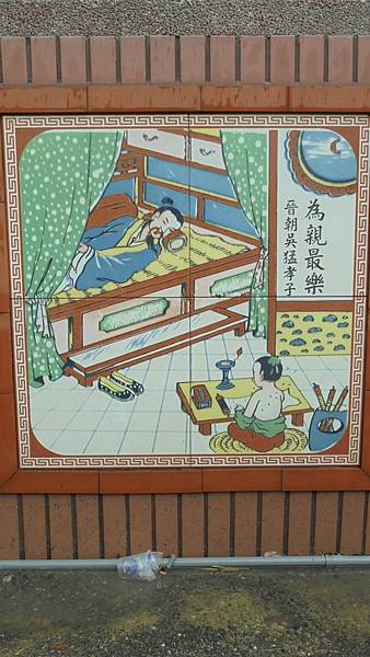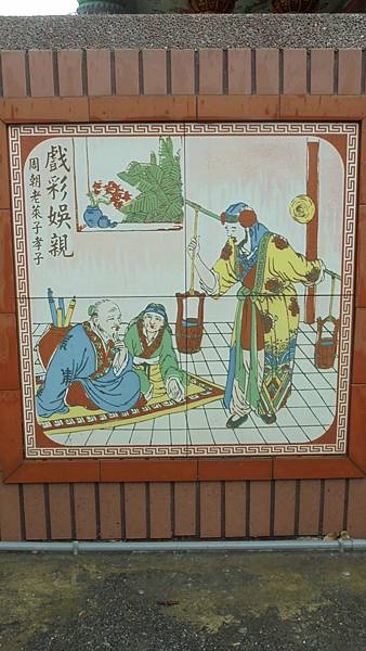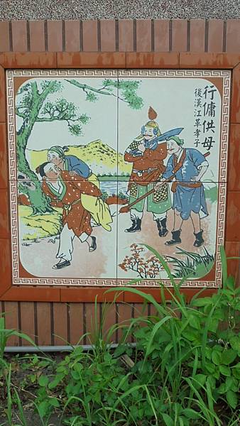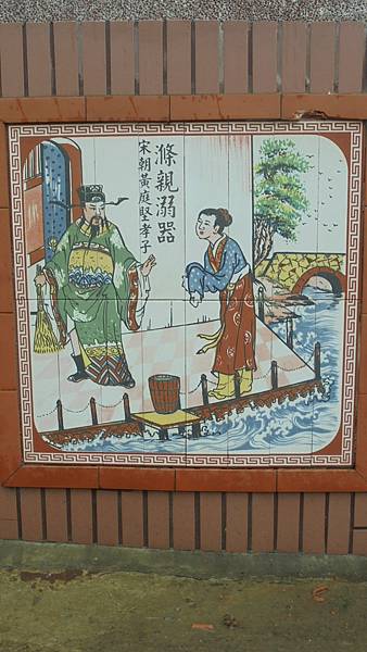 平鎮區東勢庄建安里東南福德祠,圍牆有著二十四孝的故事,教化世人。