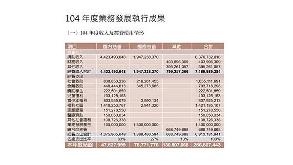 慈濟官方網站所公布的最新財務報表(104年度),70多億經費收入卻只有簡短報表。(圖片來源/截自慈濟全球資訊網)