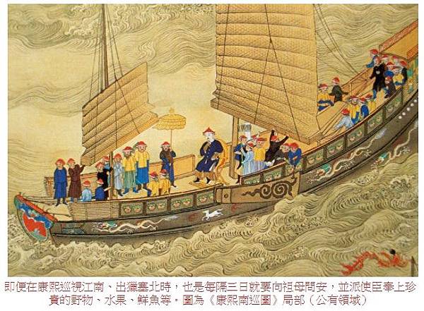 即便在康熙巡視江南、出獵塞北時,也是每隔三日就要向祖母問安,並派使臣奉上珍貴的野物、水果、鮮魚等。圖為《康熙南巡圖》局部(公有領域)