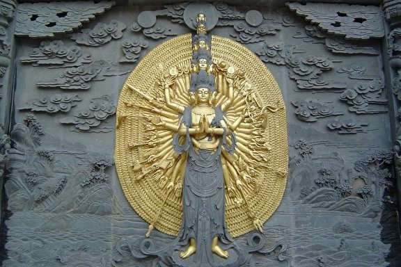 從詩文的描述來看,當時的大悲像畫著一千只手,每只手上都畫著眼睛,每個手裡拿著不同的器物,包括日月山河星宿,都在菩薩的手上,是她如意施救於人的象徵。
