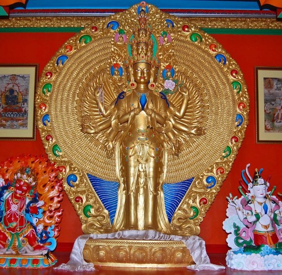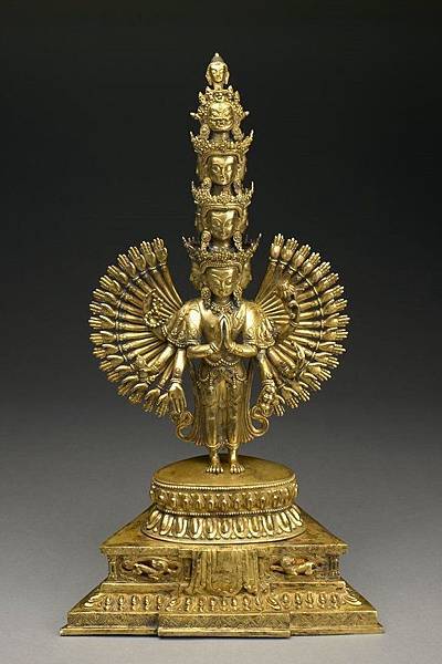 西藏藝術家鑄造的青銅鎏金千手觀音銅像。