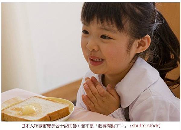 一粒米上有七位神仙。「我們是領受了動植物的生命得以進食。對於以命換命而感謝的心情說『感謝賞賜』因為它們,人們的生命得以繼續延續與生存,也向恩賜人們食物的神和大自然表達尊敬與感謝。後來也作為感謝農民以及其它提供食物的勞動者,因而形成了這項餐飲禮儀。因此說這句話的時候,一定要將雙手合十,放在胸前,敬重地表達感謝。日本國民從小接受這樣的教育, 他們認為吃飯前若不懂得感謝,是非常不敬的行為。 https://goo.gl/csJm9g