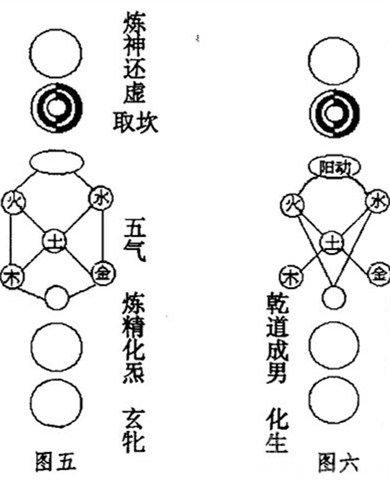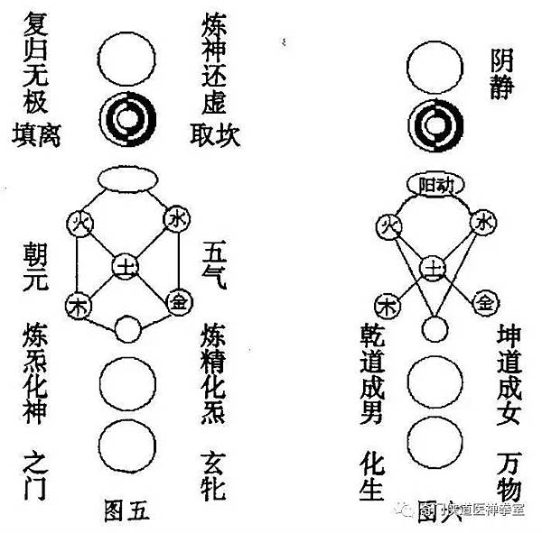 (第三層的五行圖),此陽變陰合,而生水、火、木、金、土也。