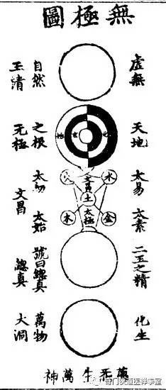 其次,關於《太極圖說》的「說」,其首句除了「無極而太極」之外,還有另外兩個版本,一是國史本作「自無極而為太極」,二是九江本作「無極而生太極」。朱熹把「無極而太極」解釋為「無形而有理」,陸九淵則認為「無極」之說出自老子,而聖人只言「太極」,不言「無極」,《太極圖說》在「太極」之上又言「無極」,是蔽於老子「有生於無」之說。朱、陸的「無極」與「太極」之辯,雙方都持論甚堅,往復辯論,最後是以朱熹提出「各尊所聞、各行所知……無復可望於必同」(《朱文公文集》卷三十六《答陸子靜·六》)而告終。