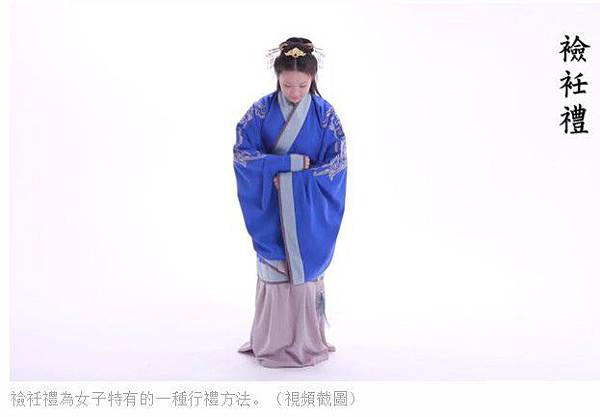 女子特有的行禮方法,一種叫做襝衽禮,有衣袖寬大所以要收斂衣襟的意涵。