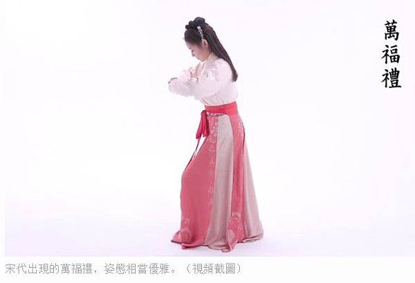 宋代出現的萬福禮,姿態相當優雅。(視頻截圖)