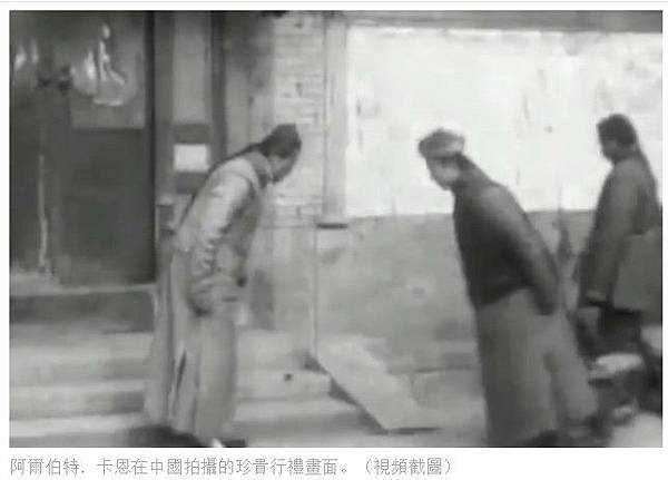 阿爾伯特.卡恩在中國拍攝的珍貴行禮畫面。(視頻截圖)