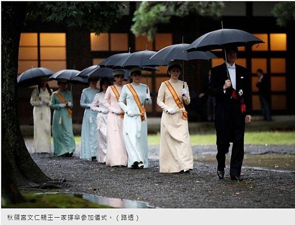 秋篠宮文仁親王一家撐傘參加儀式。(路透)
