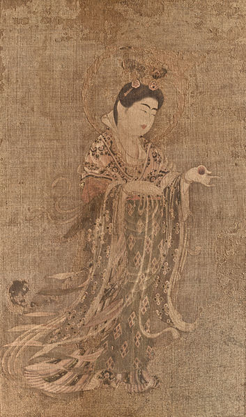 第一件五衣內裏深紫色,先穿右手再穿左手。衣服是平面裁剪,為了符合立體的人身,『前衣紋者』在腰部左右各抓一道褶。↓