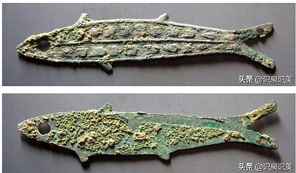 魚形幣不僅在考古發掘中有所證實,而且如果考察古代文獻,實際上也有所蹤。《易.剝》:"六五,貫魚以宮人,寵,無不利。" 高亨注:"貫,穿也。貫魚者個個相次,不得相越,以喻人有排定之順序……爻辭言:統治者如貫魚之排定順序,用宮人而寵愛之,輪流當夕,則宮人不致爭寵吃醋,相妒相軋,乃無不利。"後因指以次進御,不偏愛。對於「貫」字,《說文》釋「貫,錢貝之貫。」當然,後來的貫也成為錢幣數量單位,一千文錢為一貫。理解了貫字的含義,所以王「貫魚以宮人」作為憑證,就不應該是直接利用的活魚,而是利用銅魚這種「錢貝」了。也就是說把錢幣銅魚穿起來,排在哪裡,某條銅魚就代表著某位宮人,依次為王輪流當夕,而寵愛之,則無不利。當然如果王用真魚的話,放在臥室里,不僅腥臭,影響王之性慾,而且腐爛後,又怎麼能作為年復一年的憑證呢?其實不僅在周代利用錢幣銅魚來排序,現在算卦的先生,也經常用銅錢來占卜命運,其含義如出一轍。