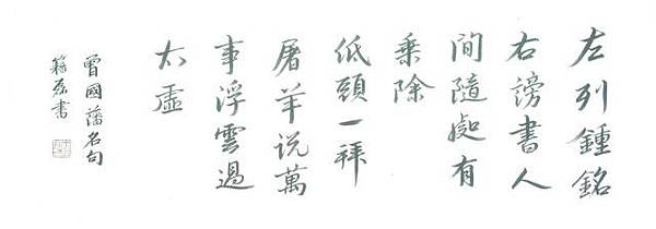 詩文大意是:對於位高權重之人,往往他的左邊陳列著鐘鼎銘記的功勳,右邊則是誹謗他的狀書。人間隨處變幻莫測,那些看不見的風險,此起彼伏就像算數上的加減乘除,沒有定數。曾國藩建議弟弟要像屠羊說一樣低調做人,對功名之事謹慎謙讓。人間萬事就像天上的浮雲,最終都會一消而散。