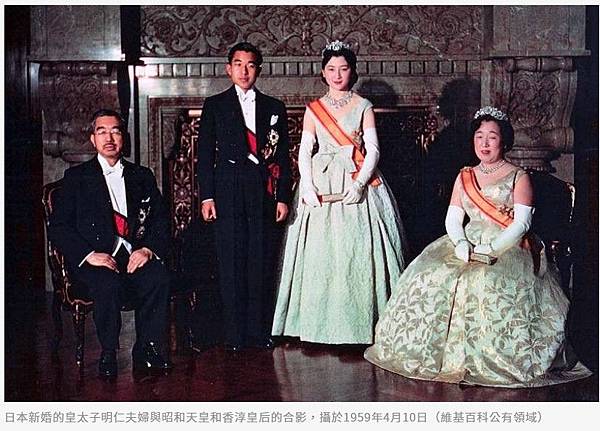 明仁(左)打破歷史慣例,與平民女子美智子(右)結婚。