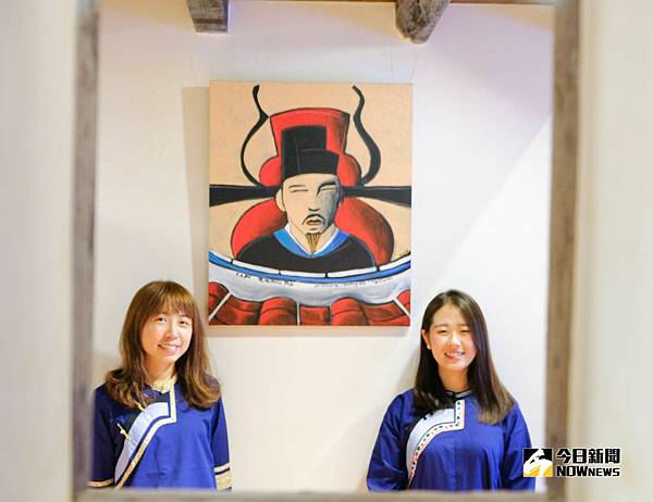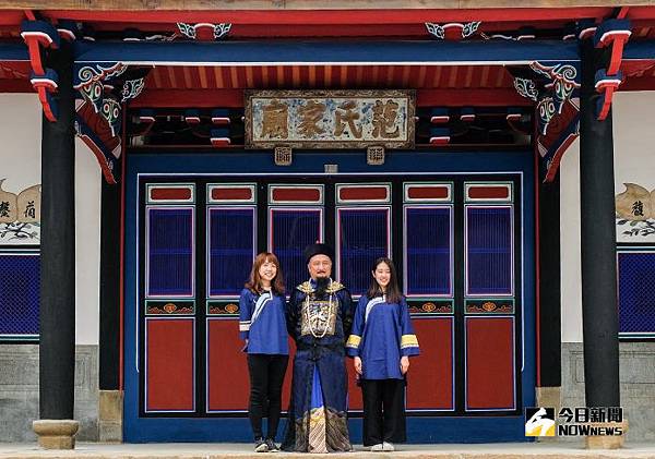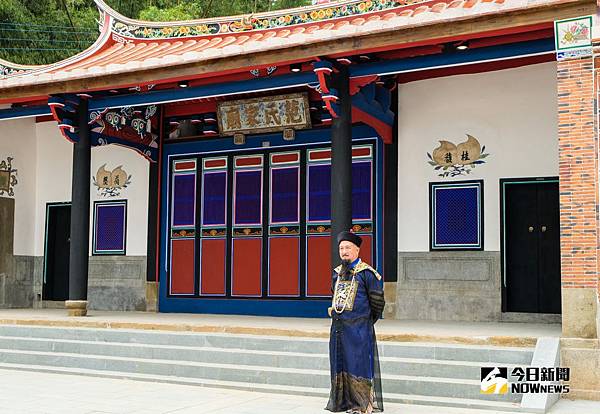 ▲新埔范氏家廟歷經11年修復,終於落成再現風華,主委范佐英(中)巧扮祖先范仲淹。(圖/記者誾宣震攝,2018.10.11)