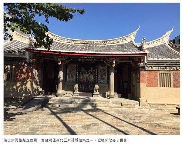 陳氏宗祠是縣定古蹟,為台灣僅存的五所磚雕建築之一。記者郭政芬/攝影