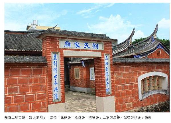 縣定三級古蹟「劉氏家廟」,素有「匾額多、燕尾多、功名多」三多的美譽。記者郭政芬/...