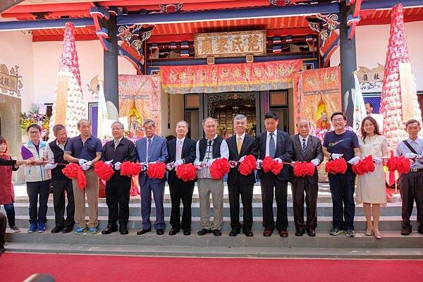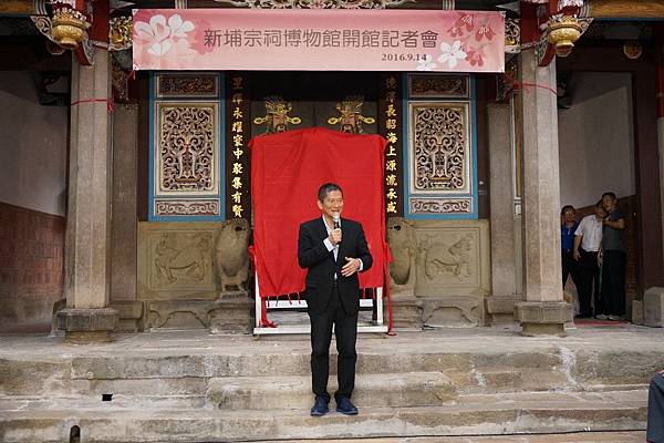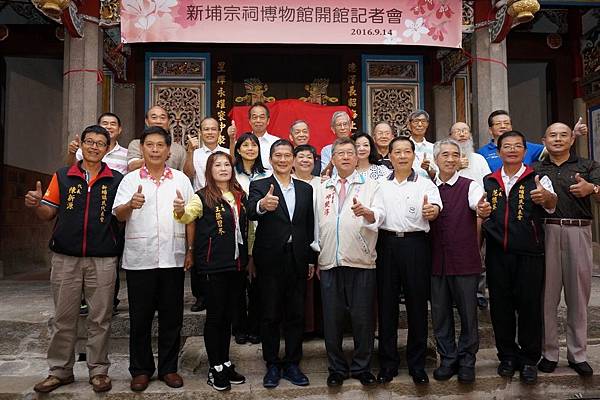 今(14)日典禮由李主委,新竹縣長邱鏡淳,及參與宗祠博物館聯營計畫的9大宗祠代表,一同揭開代表新埔宗祠博物館之識別系統,宣告「新埔宗祠博物館」正式開館,而負責維運的駐地工作站也將進駐陳氏宗祠,為宗祠聯營及在地活化提供相關服務。