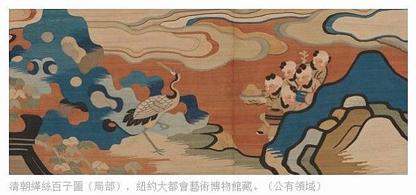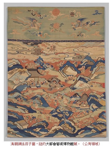 清朝緙絲百子圖,紐約大都會藝術博物館藏。(公有領域)