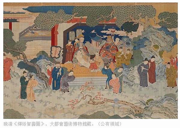 晚清《緙絲賀壽圖》,大都會藝術博物館藏。(公有領域)