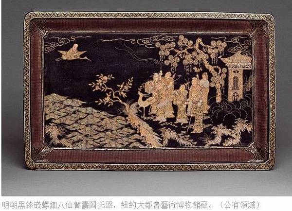 明朝黑漆嵌螺鈿八仙賀壽圖托盤,紐約大都會藝術博物館藏。(公有領域)