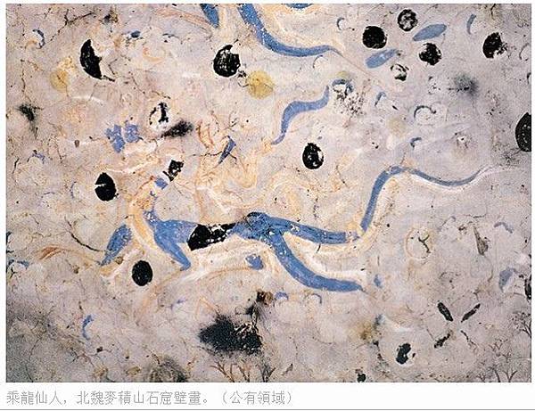 乘龍仙人,北魏麥積山石窟壁畫。(公有領域)