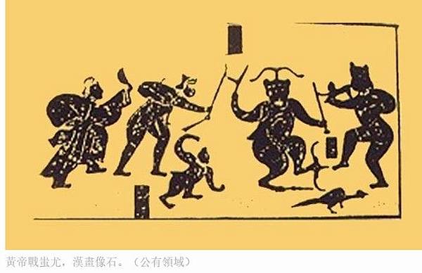 黃帝戰蚩尤,漢畫像石。(公有領域)