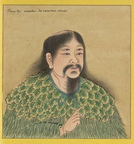 倉頡有四隻眼睛,像出《Portraits de Chinois celebres》(歷代帝王聖賢名臣大儒遺像),18世紀繪製,法國國家圖書館藏。(公有領域)
