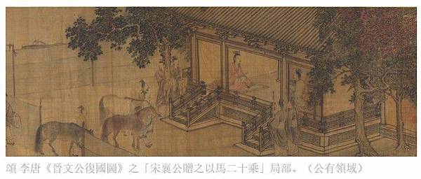 頌 李唐《晉文公復國圖》之「宋襄公贈之以馬二十乘」局部。(公有領域)